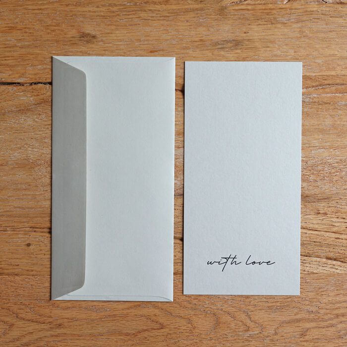 • Super schöne, extra für uns gefertigte werbefreie Couverts mit breiter Lasche: 120g/m2.