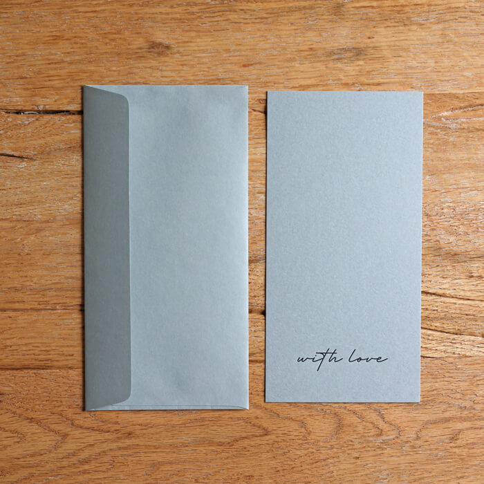 • Super schöne, extra für uns gefertigte werbefreie Couverts mit breiter Lasche: 120g/m2.