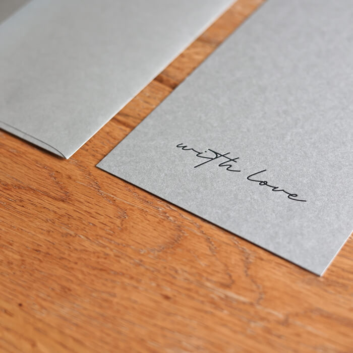 • Papier: Gmund Papier 300 g/m², dunkelgrau