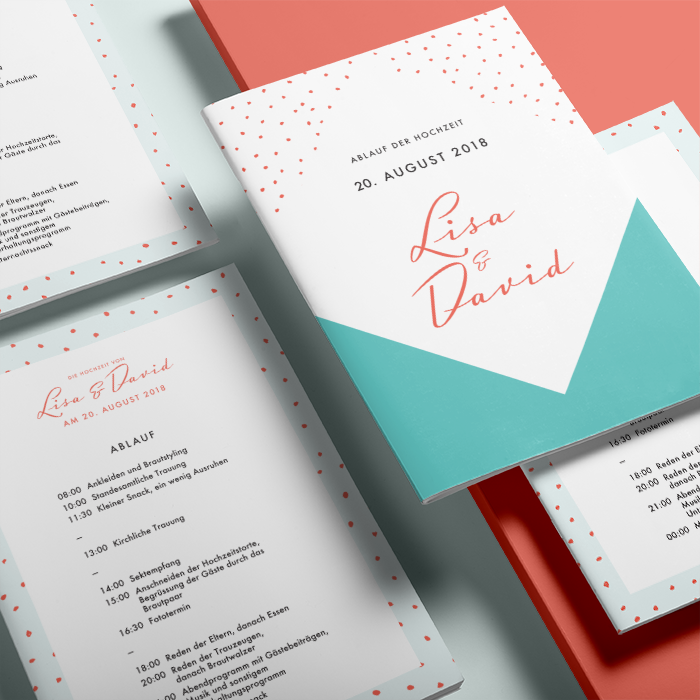 - Text für den detaillierten Ablauf (falls gewünscht inkl. Uhrzeiten), welcher auf der Karte gedruckt werden soll