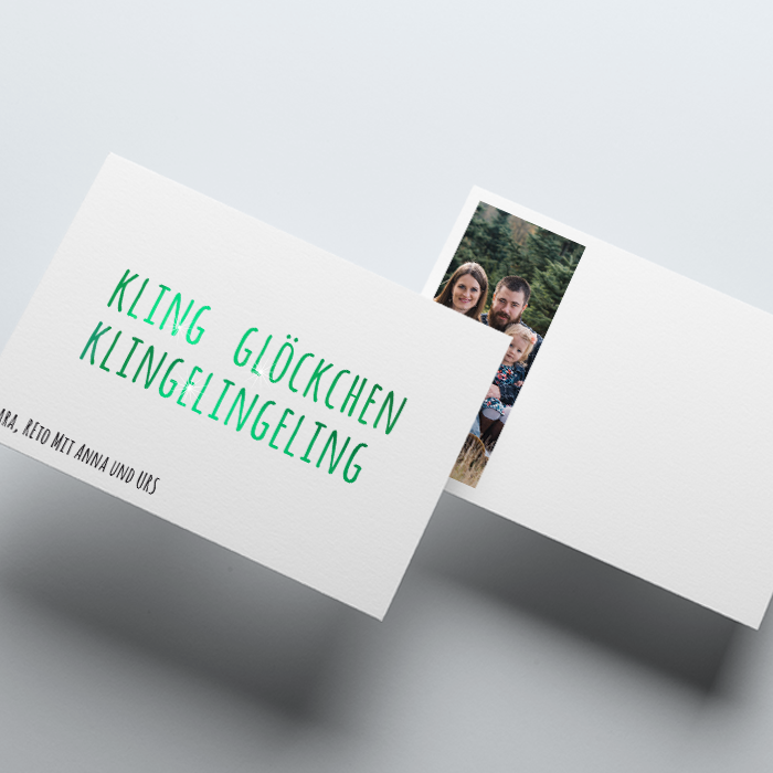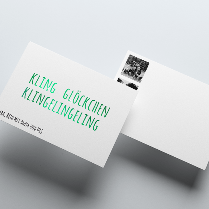 • Veredelung: Grünheissfolienprägung der Worte «Kling Glöckchen Klingelingeling»
